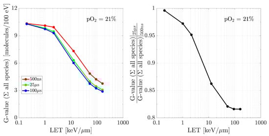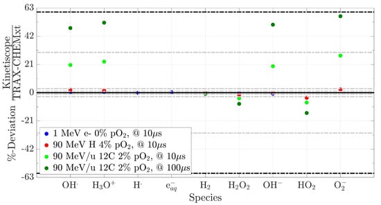 - Alanazi, A.; Meesungnoen, J.; Jay-Gerin, J.P. A computer modeling study of water radiolysis at high dose rates. Relevance to FLASH radiotherapy. Radiat. Res. 2020, 195, 149–162. [Google Scholar] [CrossRef] [PubMed]