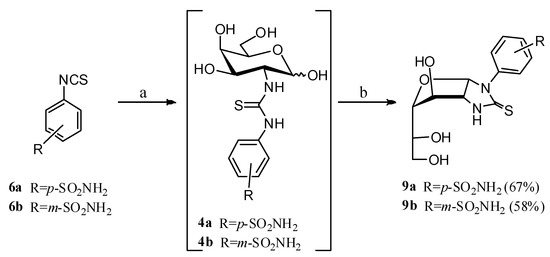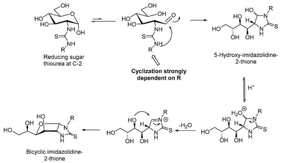 - Fernández-Bolaños Guzmán, F.; García Rodríguez, S.; Fernández-Bolaños, J.; Díanez, M.J.; López-Castro, A. Reaction of 2-amino-2-deoxy-d-glucose with aryl and acyl isothiocyanates, and aryl isocyanates: Structure of the intermediate products. Carbohydr. Res. 1991, 210, 125–143. [Google Scholar] [CrossRef]