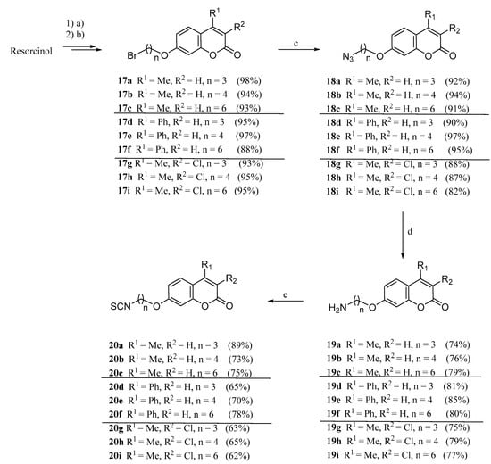3.1.6. General Procedure for the O-Alkylation of 7-Hydroxycoumarins with α,ω-Dibromoalkanes (17a–i)