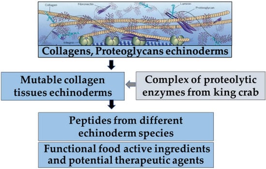 In recent decades, various species of echinoderms, especially holothurians (holothurians), have gained popularity among researchers as an ideal source of collagens and proteoglycans. Most holothurians contain higher levels of these proteins and peptides and lower levels of lipids than other animal products, suggesting their potential benefits in terms of healthy, functional nutrition. The use of marine collagens is a hot topic in the field of tissue engineering and cosmetology. A distinctive feature of the physiology and biochemistry of holothurians is their amazing ability to regenerate lost tissues. It is believed that the regular use of holothurian (trepang)