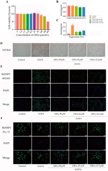 2.1.1. GB1a Decreased OA&PA-Induced Lipid Accumulation in HepG2 Cells