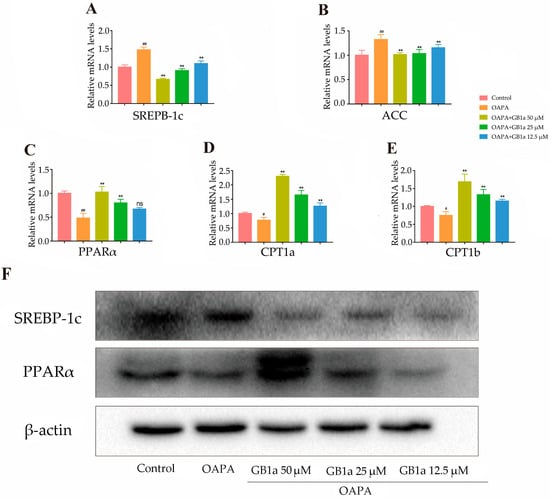2.1.2. GB1a Inhibited Lipogenic Genes and Promoted the Expression of Lipid Oxidation Genes in HepG2 Cells