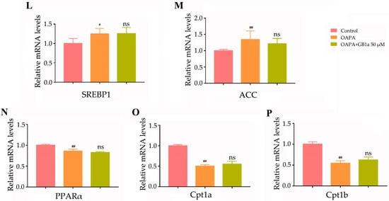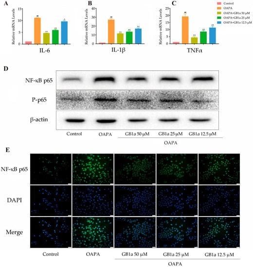 2.1.4. GB1a Alleviated the OA&PA-Induced Inflammatory Response in HepG2 Cells