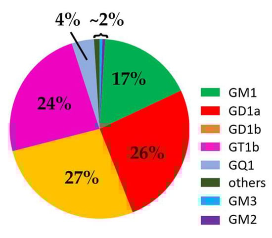 Major ganglioside species and their proportions in the adult human brain. This figure is generated using the data presented in the literature [29,35].
