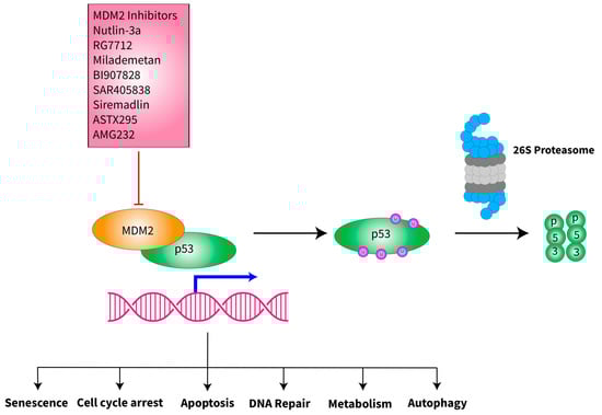 - Konopleva, M.; Martinelli, G.; Daver, N.; Papayannidis, C.; Wei, A.; Higgins, B.; Ott, M.; Mascarenhas, J.; Andreeff, M. MDM2 inhibition: An important step forward in cancer therapy. Leukemia 2020, 34, 2858–2874. [Google Scholar] [CrossRef]