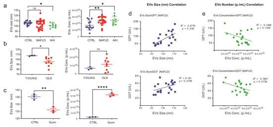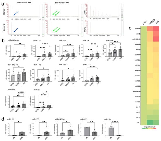 2.5. Analysis of miRNA Expression in EVs Isolated from Patients with Liver Diseases and Aged Animals