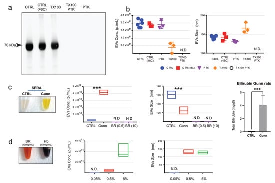 - Osteikoetxea, X.; Sodar, B.; Nemeth, A.; Szabo-Taylor, K.; Paloczi, K.; Vukman, K.V.; Tamasi, V.; Balogh, A.; Kittel, A.; Pallinger, E.; et al. Differential detergent sensitivity of extracellular vesicle subpopulations. Org. Biomol. Chem. 2015, 13, 9775–9782. [Google Scholar] [CrossRef]