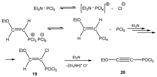 - Rozinov, V.G.; Kolbina, V.E.; Donskikh, V.I. Reaction of divinyl ether with phosphorus pentachloride. Russ. J. Gen. Chem. 1987, 57, 847–849. [Google Scholar]