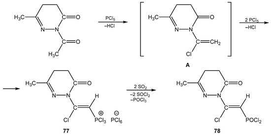 - Rozinov, V.G.; Pensionerova, G.A.; Izhboldina, L.P.; Donskih, V.I. Reaction of β-substituted enamines with phosphorus pentachloride. Russ. J. Gen. Chem. 1985, 55, 2626–2627. [Google Scholar]