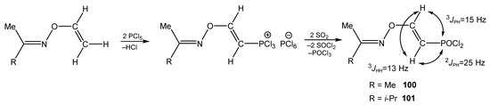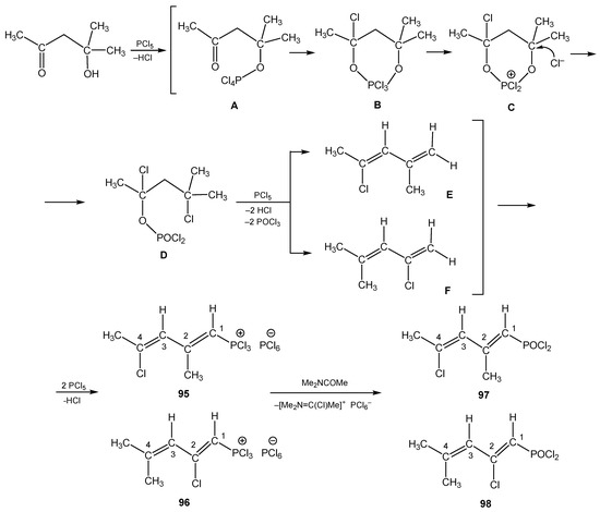 - Larina, L.I.; Komarova, T.N.; Rozinov, V.G. C-phosphorylation of unsaturated ketones with phosphorus pentachloride. Russ. J. Gen. Chem. 2016, 86, 512–514. [Google Scholar] [CrossRef]