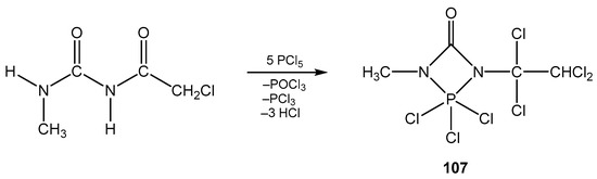 - Dmitrichenko, M.Y.; Rozinov, V.G.; Donskih, V.I.; Ratovskiy, G.V.; Sergienko, L.M.; Dolgushin, G.V.; Valeev, R.B. Phosphorus-containing enureas. I. Phosphorylation of N-acetyl-N,N’-dimethylureas with phosphorus pentachloride. Russ. J. Gen. Chem. 1988, 58, 2252–2261. [Google Scholar]