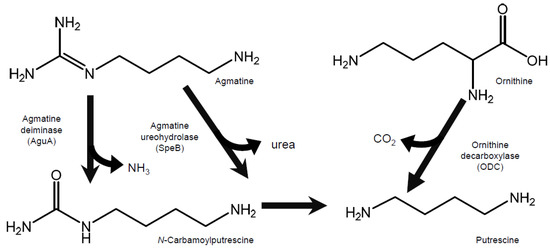 - Lucas, P.M.; Blancato, V.S.; Claisse, O.; Magni, C.; Lolkema, J.S.; Lonvaud-Funel, A. Agmatine deiminase pathway genes in Lactobacillus brevis are linked to the tyrosine decarboxylation operon in a putative acid resistance locus. Microbiology 2007, 153 Pt 7, 2221–2230. [Google Scholar] [CrossRef]