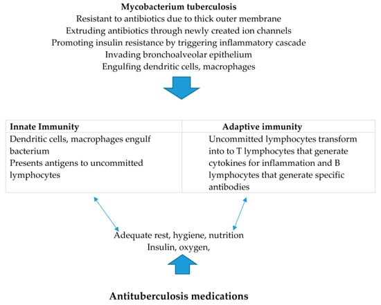 - Ayelign, B.; Negash, M.; Genetu, M.; Wondmagegn, T.; Shibabaw, T. Immunological impacts of diabetes on the susceptibilities of Mycobacterium tuberculosis. J. Immunol. Res. 2019, 2019, 6196532. [Google Scholar] [CrossRef]