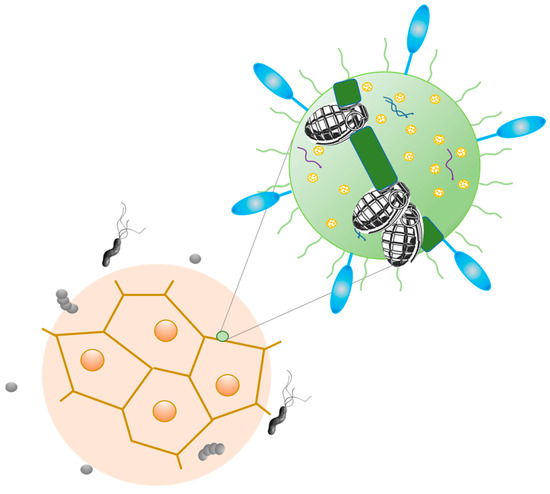 A multitude of reporter genes, cytotoxic proteins, and tumor-specific antigens can be expressed using genetically engineered bacteria as a vector. The engineered bacterium enters the target cells and expresses the transgene, resulting in the expression of therapeutic proteins (bactofection). The invasive bacteria can deliver genes intracellularly into the tumor cells, thus fostering bactofection into tumor cells, whereas the noninvasive strains are engineered to release therapeutic proteins external to the tumor microenvironment [24]. Many studies have confirmed the anticancer potential of engineered bacteria expressing death-inducers—ligands which penetrate into tumor cells and induce apoptosis [138,139,140]. Actually, the ideal bacterial microrobot should be a kind of “minicell”—the nanosized, anucleated, nondividing, and metabolically active cells that are able to transcribe and translate the gene of interest. Minicells should be able to encapsulate a wide range of chemotherapeutic and molecular drugs, si/shRNA, antigens, and therapeutic toxins to precisely deliver them to the cancer cells through the easy modification of the minicell surface with specific antibodies against receptor-targeted cancer cells [141] (Figure 3).