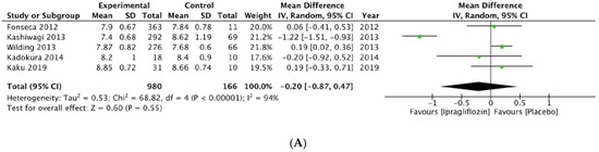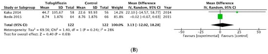 The results for ipragliflozin and tofogliflozin had no statistical significance, as seen in Figure 3A,B, respectively.