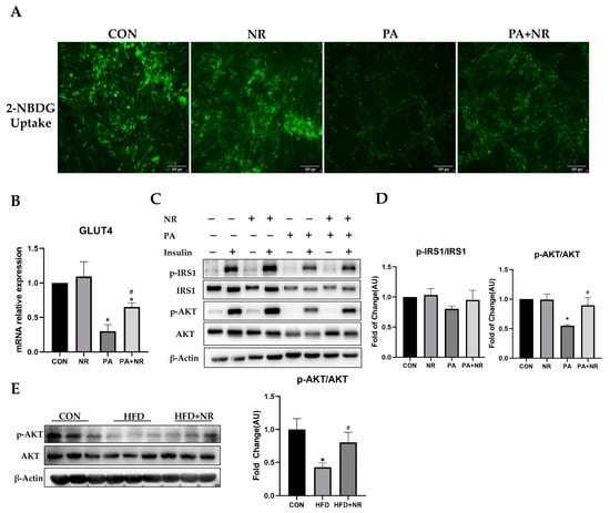 2.3. NR Supplementation Improves Insulin Sensitivity in Skeletal Muscle Cells