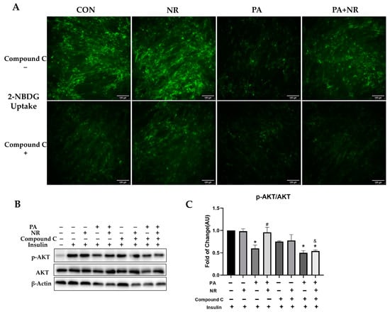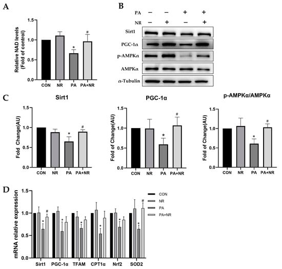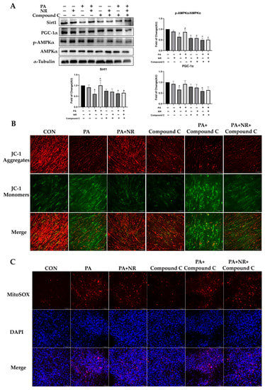 2.6. AMPK Activation Is Required for Improvement on Mitochondrial Function and Insulin Sensitivity via NR in PA-Treated Skeletal Muscle Cells