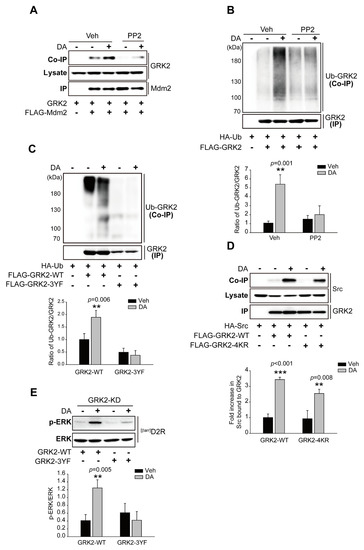2.5. Src-Mediated GRK2 Tyrosine Phosphorylation Is Required for Mdm2-Mediated GRK2 Ubiquitination