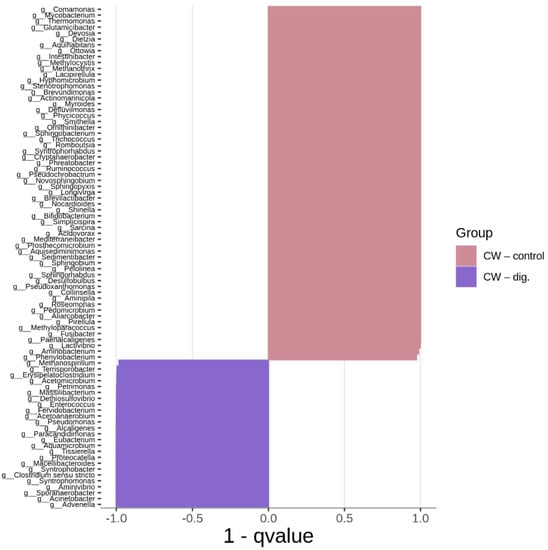 Comparison (MetaStat analysis) of bacterial genus composition between CW–control and CW–dig.