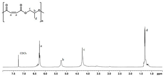 1H NMR spectrum (400 MHz, CDCl3, 298 K) of poly(propylene maleate) (entry 1 in Table 2). The letters a–d refers to the respective hydrogens in the chemical structure.