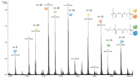 MALDI-TOF spectrum of poly(propylene maleate) described in entry 1 in Table 2.