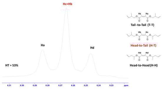 The regioregularity of the resultant PPMs was evaluated by the content of the head-to-tail (H–T) diads of PPM in the 1H and 13C NMR spectra [45] (Figure 4).