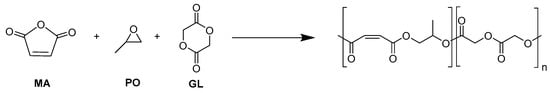 Copolymerization of propylene oxide, maleic anhydride, and glycolide.