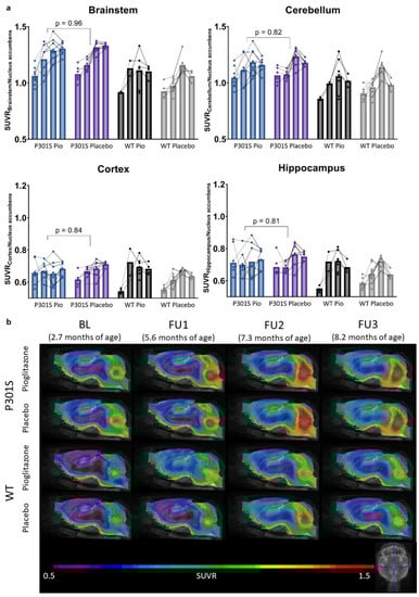2.1. Pioglitazone Treatment Has No Significant Effect on Serial TSPO-PET Signals in P301S Mice