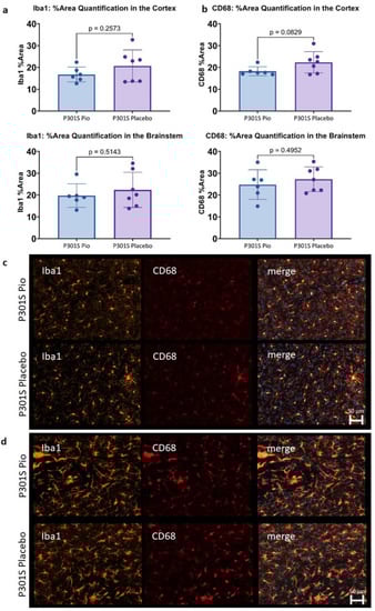 2.3. Pioglitazone Has No Significant Effect on Iba1 and CD68 Expression in P301S Mice