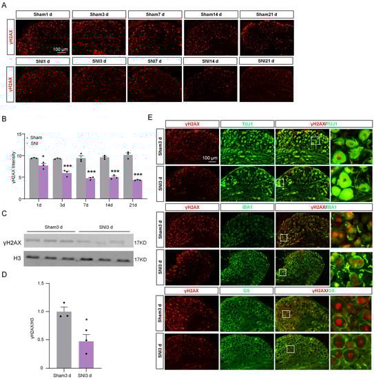 2.1. The Expression of γH2AX in DRG Was Decreased after SNI