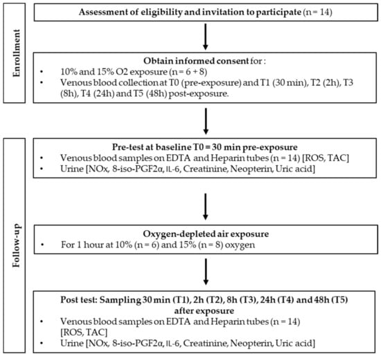 - Mrakic-Sposta, S.; Gussoni, M.; Marzorati, M.; Porcelli, S.; Bosco, G.; Balestra, C.; Montorsi, M.; Lafortuna, C.; Vezzoli, A. The “ON-OFF” Switching Response of Reactive Oxygen Species in Acute Normobaric Hypoxia: Preliminary Outcome. Int. J. Mol. Sci. 2023, 24, 4012. [Google Scholar] [CrossRef]
