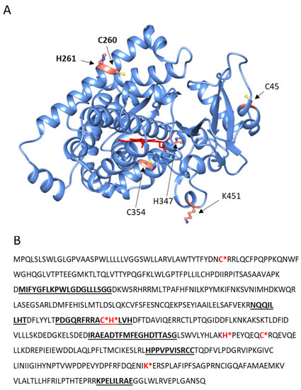 - Golizeh, M.; Geib, T.; Sleno, L. Identification of 4-hydroxynonenal protein targets in rat, mouse and human liver microsomes by two-dimensional liquid chromatography/tandem mass spectrometry. Rapid Commun. Mass Spectrom. 2016, 30, 1488–1494. [Google Scholar] [CrossRef]