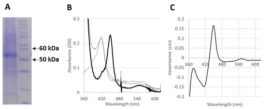 - Omura, T.; Sato, R. The Carbon Monoxide-Binding Pigment of Liver Microsomes. I. Evidence for Its Hemoprotein Nature. J. Biol. Chem. 1964, 239, 2370–2378. [Google Scholar] [CrossRef]