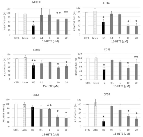 2.8. Functional Impairment of Monocytes by 15-HETE: Inhibition of Oxidative Burst and Surface Antigen Expression in Monocyte Derived DC