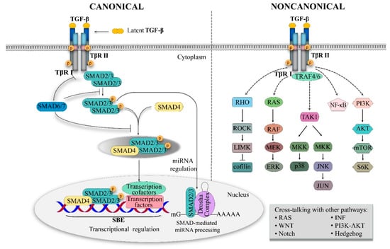 - Ikushima, H.; Miyazono, K. TGF-beta signalling: A complex web in cancer progression. Nat. Rev. Cancer 2010, 10, 415–424. [Google Scholar] [CrossRef]