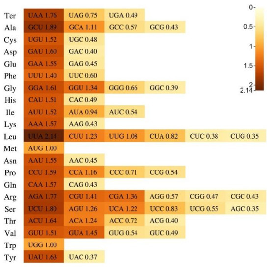 Amino acids and stop codons of RSCU for the protein-coding regions in Chinese kale.