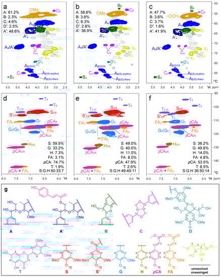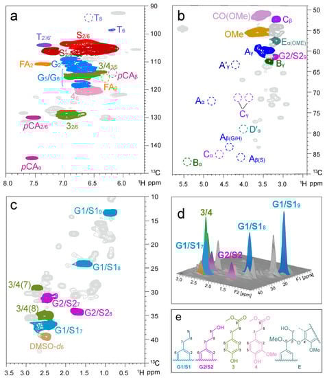 - Mansfield, S.D.; Kim, H.; Lu, F.; Ralph, J. Whole plant cell wall characterization using solution-state 2D NMR. Nat. Protoc. 2012, 7, 1579–1589. [Google Scholar] [CrossRef]