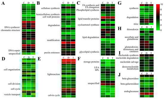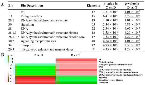 2.6. PageMan Enrichment Analysis Results of DEGs