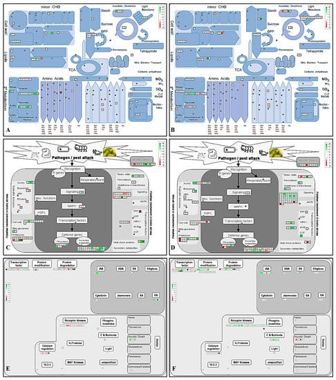 - Bolger, M.; Schwacke, R.; Usadel, B. MapMan visualization of RNA-Seq data using Mercator4 functional annotations. Methods Mol. Biol. 2021, 2354, 195–212. [Google Scholar] [PubMed]