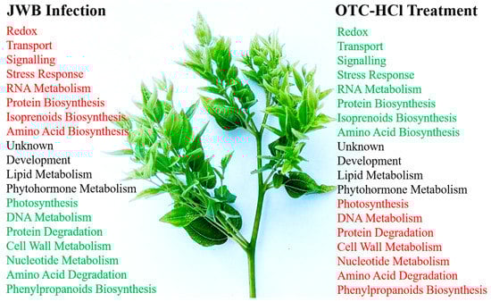 Yang J, Shen Z, Qu P, Yang R, Shao A, Li H, Zhao A, Cheng C. Influences of Jujube Witches’ Broom (JWB) Phytoplasma Infection and Oxytetracycline Hydrochloride Treatment on the Gene Expression Profiling in Jujube. International Journal of Molecular Sciences. 2023; 24(12):10313. https://doi.org/10.3390/ijms241210313