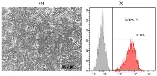 The cell cultures were dissociated using Dispase (1 mg/mL) (Stemcell Technologies, Vancouver, BC, Canada) and then labeled with SIRPa-PE antibodies (#323806, Biolegend, San Diego, CA, USA) at the recommended concentrations. The stained cells were analyzed using the FACS Canto II flow cytometer (BD Biosciences, San Jose, CA, USA) with BD FACSDivaTM software, version 8.0 (BD Biosciences, San Jose, CA, USA).