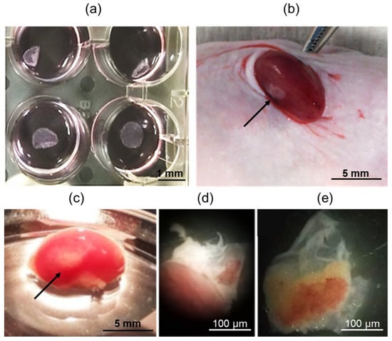 The mice showed a smooth recovery without any complications, exhibiting no signs of discomfort or infection throughout the duration of the experiment. After 42 days, when the animals were euthanized, all transplants were easily identifiable and found to be localized effectively under the renal capsule, as depicted in