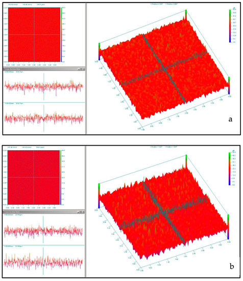 The mean surface roughness (Ra) is indicated in Table 2 for the lapped and unlapped Ti discs. Figure 4 illustrates the primary and grid mapping of (a) the Ti disc and (b) the lapped Ti disc specimen.
