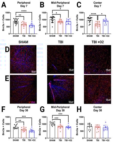 2.3. Oxygen Slows Acute RGC Loss but Does Not Ultimately Prevent Loss of RGCs
