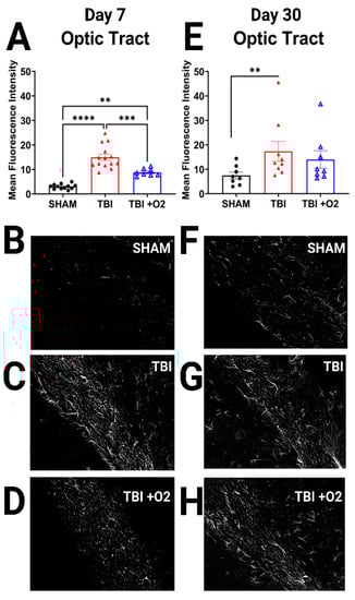 2.5. Astroglial Reactivity Is Significantly Reduced in the Brain following O2 Exposure
