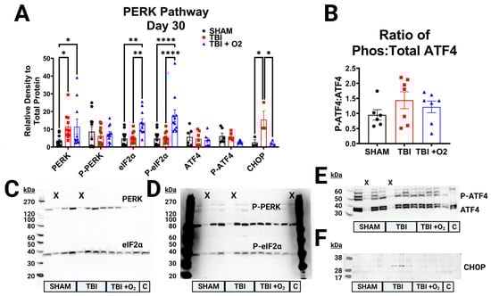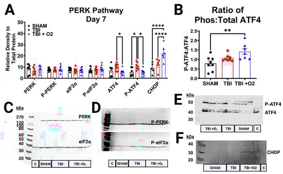 2.7. The PERK Pathway Is Sub-Acutely Elevated after TBI, but Supplemental Oxygen Reduces Long-Term Expression of Pro-Apoptotic Markers