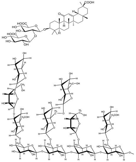 - Selyutina, O.; Polyakov, N. Glycyrrhizic acid as a multifunctional drug carrier—From physicochemical properties to biomedical applications: A modern insight on the ancient drug. Int. J. Pharm. 2019, 559, 271–279. [Google Scholar] [CrossRef] [PubMed]