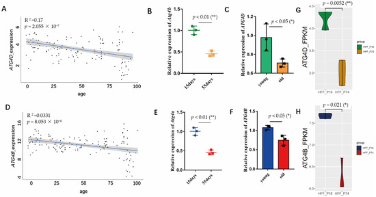 2.1. Transcript Levels of ATG4B and ATG4D Decreased during Aging