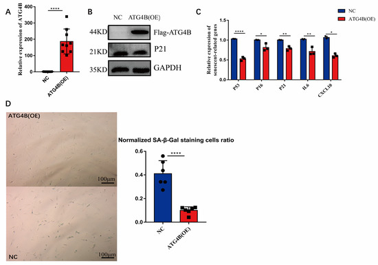 2.2. Overexpression of ATG4B Delayed Cellular Senescence