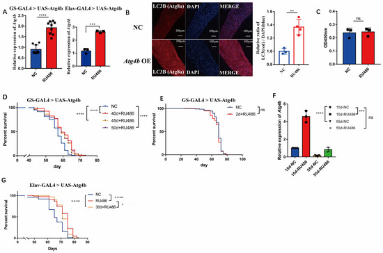APA StyleLi, Y., Zhang, W., Ye, Y., Sun, Y., Yang, L., Chen, G., Chen, K., Smith, S., & Zhou, J. (2023). Atg4b Overexpression Extends Lifespan and Healthspan in Drosophila melanogaster. International Journal of Molecular Sciences, 24(12), 9893. https://doi.org/10.3390/ijms24129893